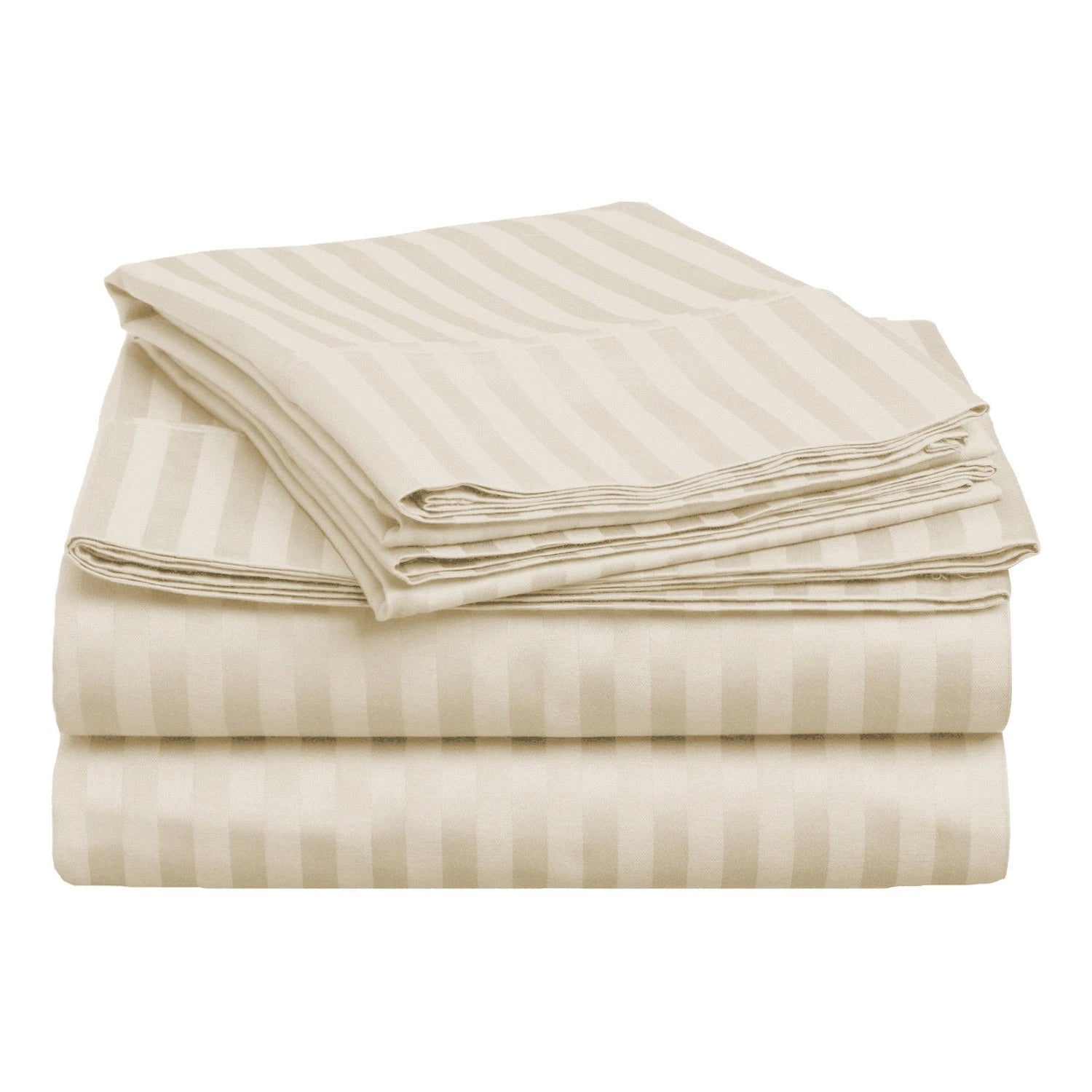 Cotton Satin Stripe King Size Flat Bed Sheet Set