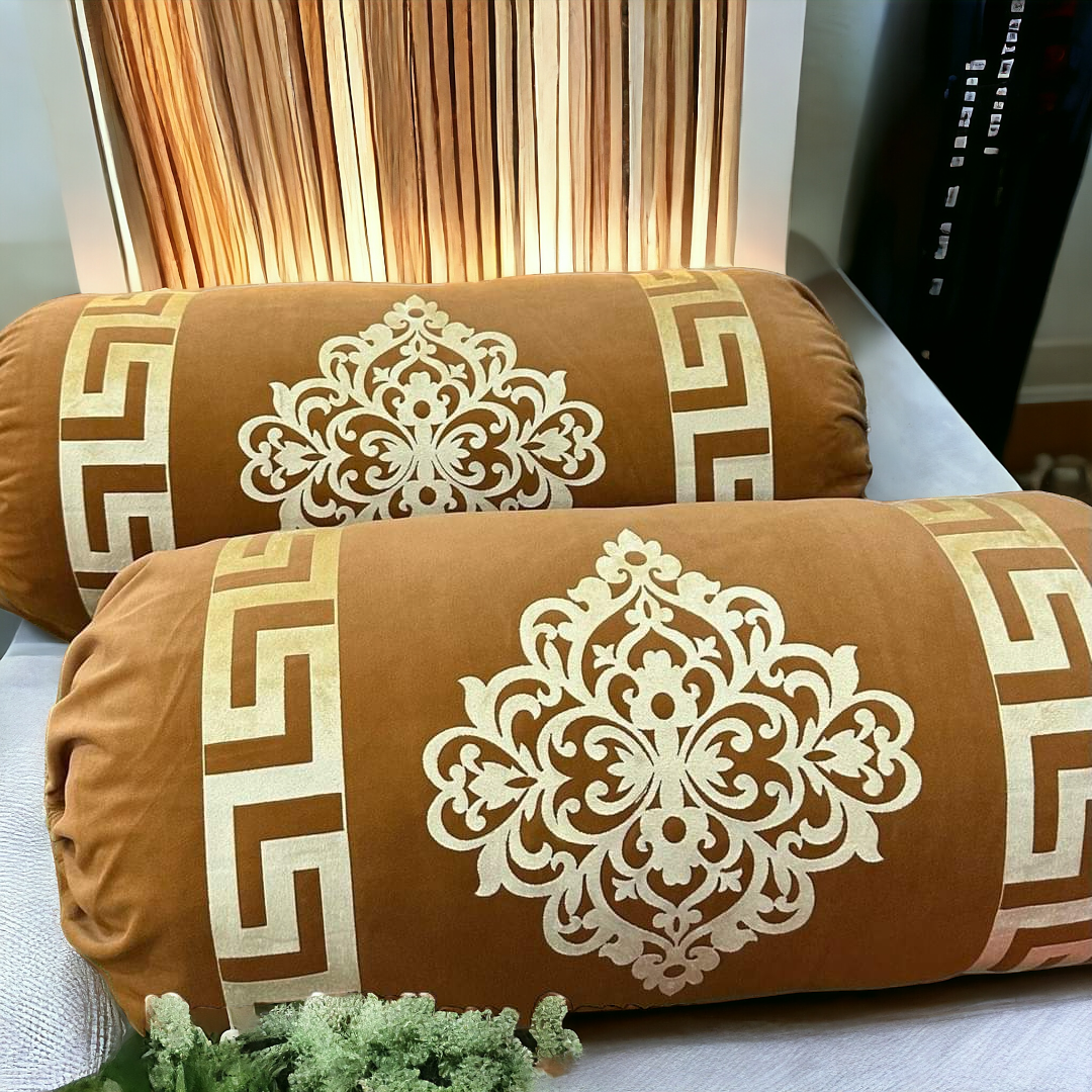 Mustard Velvet Round Pillow Cover Bolster Case - Pack of 2