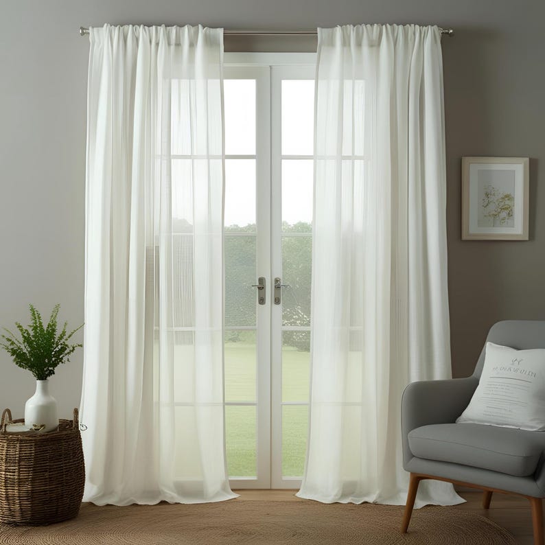 A quality plain Off white chiffon sheer curtain, rod pocket for easy slide in.