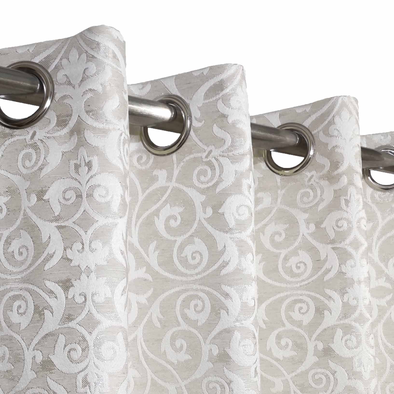 Light Beige Boucle Plain Eyelet Curtains - Pair